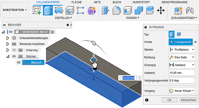 - (Herunterladen) Software CAD - Fusion-Tutorial - BONUS - Basiselement - Rechteck-Skizze Extrusion.gif . . 699 × 379 . . 40 KB . . Alfred Kamusella . . 10:22, 1. Mai 2022