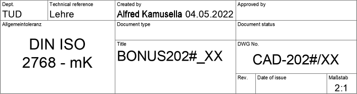 - (Herunterladen) Software CAD - Fusion-Tutorial - BONUS - Zeichnungsansichten - Standardschriftfeld.gif . . 618 × 162 . . 8 KB . . Alfred Kamusella . . 09:55, 8. Mai 2022