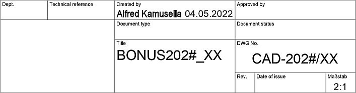 - (Herunterladen) Software CAD - Fusion-Tutorial - BONUS - Schriftfeld - bearbeitet mit Maszstab.gif . . 707 × 186 . . 10 KB . . Alfred Kamusella . . 12:29, 12. Mai 2022