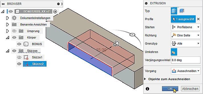 - (Herunterladen) Software CAD - Fusion-Tutorial - BONUS - Skizzierte Elemente - Rechteckprofil Kontextmenu-Extrusion.gif . . 532 × 263 . . 20 KB . . Alfred Kamusella . . 07:52, 3. Mai 2022