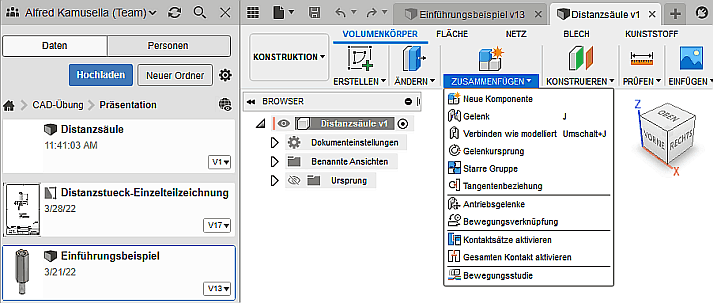 - (Herunterladen) Software CAD - Fusion-Tutorial - Distanzstueck - Baugruppe - Neu - Zusammenfuegen-Funktionen.gif . . 713 × 303 . . 39 KB . . Alfred Kamusella . . 10:18, 10. Apr. 2022