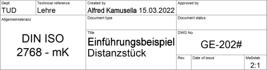 - (Herunterladen) Software CAD - Fusion-Tutorial - Distanzstueck - Schriftfeld - bearbeiten Allgemeintoleranz.gif . . 698 × 422 . . 53 KB . . Alfred Kamusella . . 08:31, 28. Mär. 2022