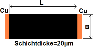 - Ru= 171 Ω mit L/B=1,71 ergibt RF=100 Ω/□