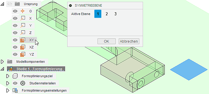 Datei:Software FEM - Tutorial - Topologie-Optimierung Fusion-Formoptimierung Symmetrieebene.gif