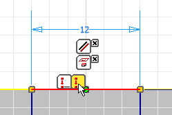 • Bewegt man sich mit dem Cursor über ein Abhängigkeitssymbol, so werden die über diese Abhängkeit verknüpften Skizzen-Elemente hervorgehoben (z.B. sind gegenüberliegende Seiten eines Rechtecks automatisch mit der Abhängigkeit "parallel" verknüpft).