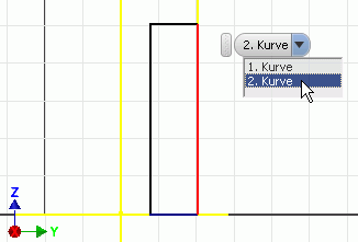 - Nur bei Wahl der YZ-Ebene kann man nachträglich die erforderlichen Modellkanten als Geometrie auf die Skizze projizieren.