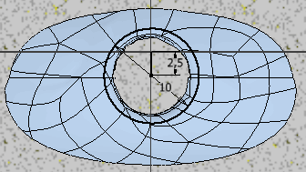 - Auf der Ebene erzeugen wir eine neue Skizze mit einem 10 mm großen Kreis um die verbleibende Lochform (2,5 mm unterhalb des Ursprungs):