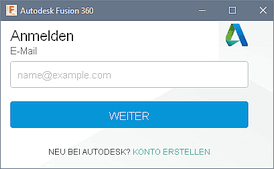 Unabhängig von der benutzten Fusion-Version gelangt man nicht direkt in die Programm-Oberfläche, sondern muss sich zur mittels seines Autodesk-Accounts anmelden: