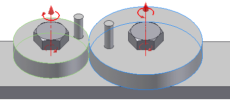 - Nach der Montage sollten Schraube und Muttern "festgezogen" und die beiden sich berührenden Reibräder unabhängig voneinander drehbar sein (MFL > Ansicht > Sichtbarkeit > Freiheitsgrade verdeutlicht die Beweglichkeit):