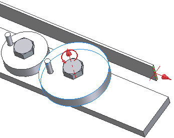 - Wir wählen zuerst die Reibfläche des Rades und dann die Stirnseite vom Schub-Teil. Entscheidend ist dabei die Richtung der Flächennormale, welche als gewünschte translatorische Bewegungsrichtung interpretiert wird:
