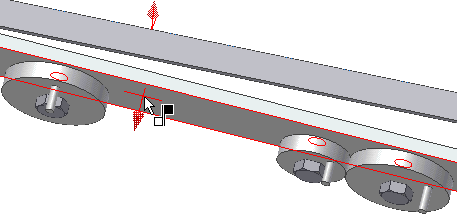 - Der Abstand gibt an, um welche Strecke sich die zweite Komponente (Schub) relativ zu einer Umdrehung der ersten Komponente (Rad) bewegt. Ein Wert von 188,5 mm verschiebt die zweite Komponente um 188,5 mm, wenn die erste Komponente eine vollständige Umdrehung macht. Ist die erste Komponente eine zylindrische Fläche, wird der Umfang dieser Komponente als Abstand angezeigt.