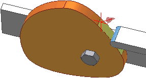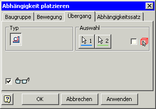 - Bei der Definition der Abhängigkeit "Übergang" sollte der Halbzylinder als erste Kontaktfläche gewählt werden, damit der Kontaktsatz durch die Oberfläche der Kurvenscheibe gebildet wird: