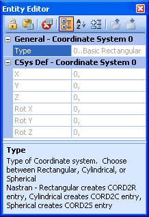 - Abgebildet werden darin die Werte-Felder des ausgewählten Modell-Elements (im Beispiel ein Koordinatensystem):