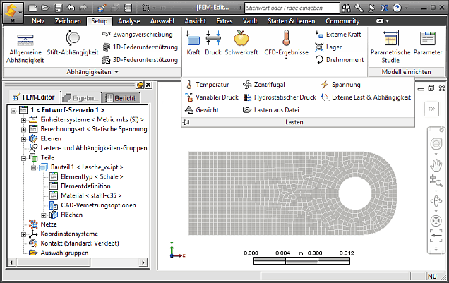 - Die in Autodesk Simulation Mechanical verfügbaren Lasten findet man unter MFL > Setup > Lasten: