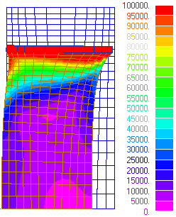 - Die Auswirkungen der höheren Netzqualität auf die Ergebnisse der Simulation sind merklich. So wird z.B. die Belastung des Gummis an den Scheibenrändern deutlicher: