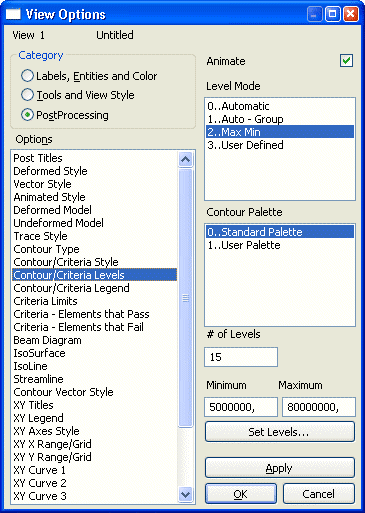 : z.B. Wahl der Größen für die Deformation- und Contour-Darstellung - <F6>=View Options