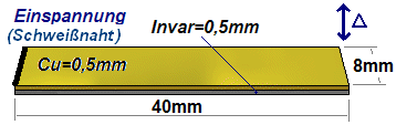 Wir werden im Übungsbeispiel eine Kombination aus Kupfer und Invar benutzen. Trotz der Temperaturabhängigkeit der Ausdehnungskoeffizienten soll von konstanten Materialkennwerten ausgegangen werden (Lineares Modell!).