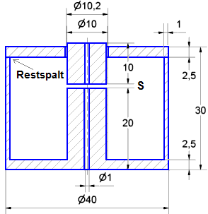 - Zwischen Deckel und Topf existiert infolge unvermeidlicher Toleranzen und Oberflächen-Rauhigkeiten ein luftgefüllter Restspalt sDeckel im µm-Bereich