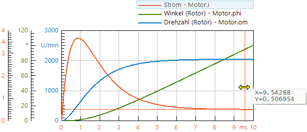 - Wahl von Motor.i im Ergebnisfenster (z.B. über die Legende) und Wahl des Zeitpunktes X mit dem Cursor (Siehe vorheriges Bild).
