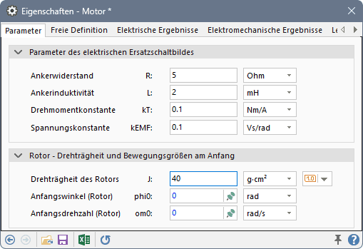 Unser Motor-Modell besitzt noch eine "unendlich" große Drehträgheit! Damit sich der Rotor wieder normal drehen kann, müssen wir den Wert der Drehträgheit im Modell-Element auf den richtigen Wert zurücksetzen:
