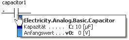 - Wir beginnen mit dem Kondensator, den wir aus der Bibliothek (Elektronik>Analog>Grundbausteine) in den Modellbereich ziehen.