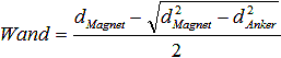 - aus der Gleichheit der Flächen: π/4·d2Anker =π/4·(d2Magnet -(dMagnet - 2·Wand)2)