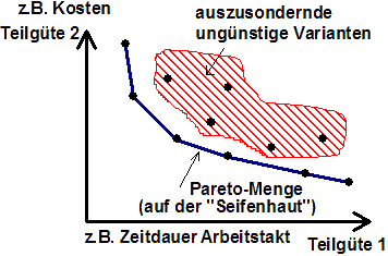 Auf Grundlage der Pareto-Menge kann man entscheiden, wieviel Verschlechterung einzelner Gütekriterien man akzeptiert, um anderen Kriterien möglichst gut zu genügen:
